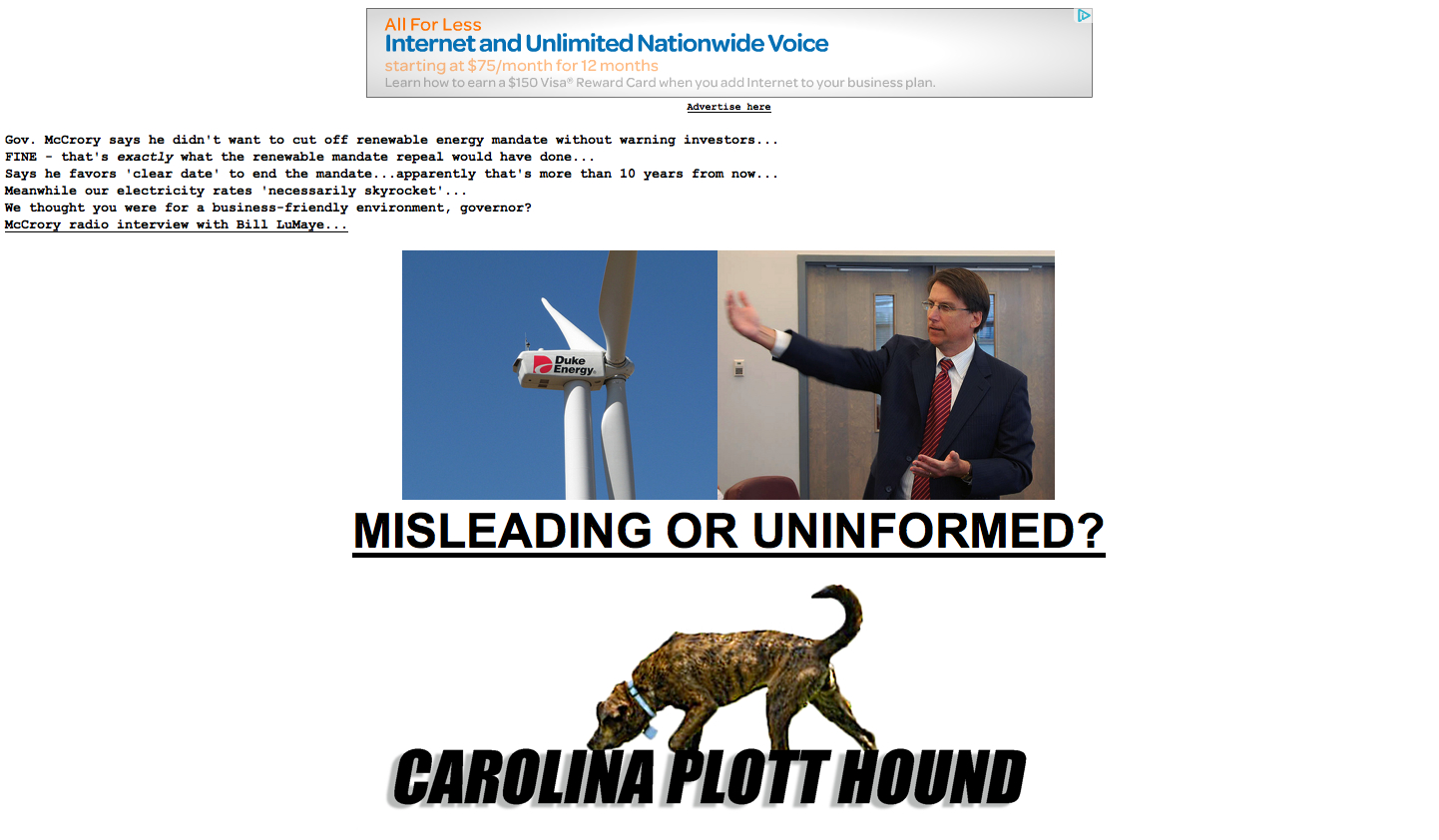The Kernersville News published Vice President for Research and Resident Scholar Roy Cordato‘s column panning Gov. Pat McCrory’s efforts to preserve costly state renewable energy mandates. The Carolina Plotthound website publicized as a lead story Cordato’s research newsletter on McCrory’s questionable comments regarding renewable energy.